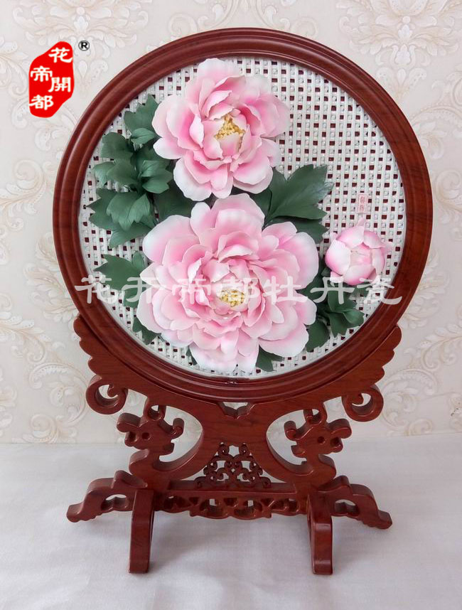 產品系列主要包括:牡丹瓷花盤、牡丹瓷屏風、牡丹瓷盆景、牡丹瓷壁掛和牡丹瓷鼎,形式多種多樣!每一件作品都是藝術的結晶,花、枝、葉均是手工捏制,造型逼真生動。