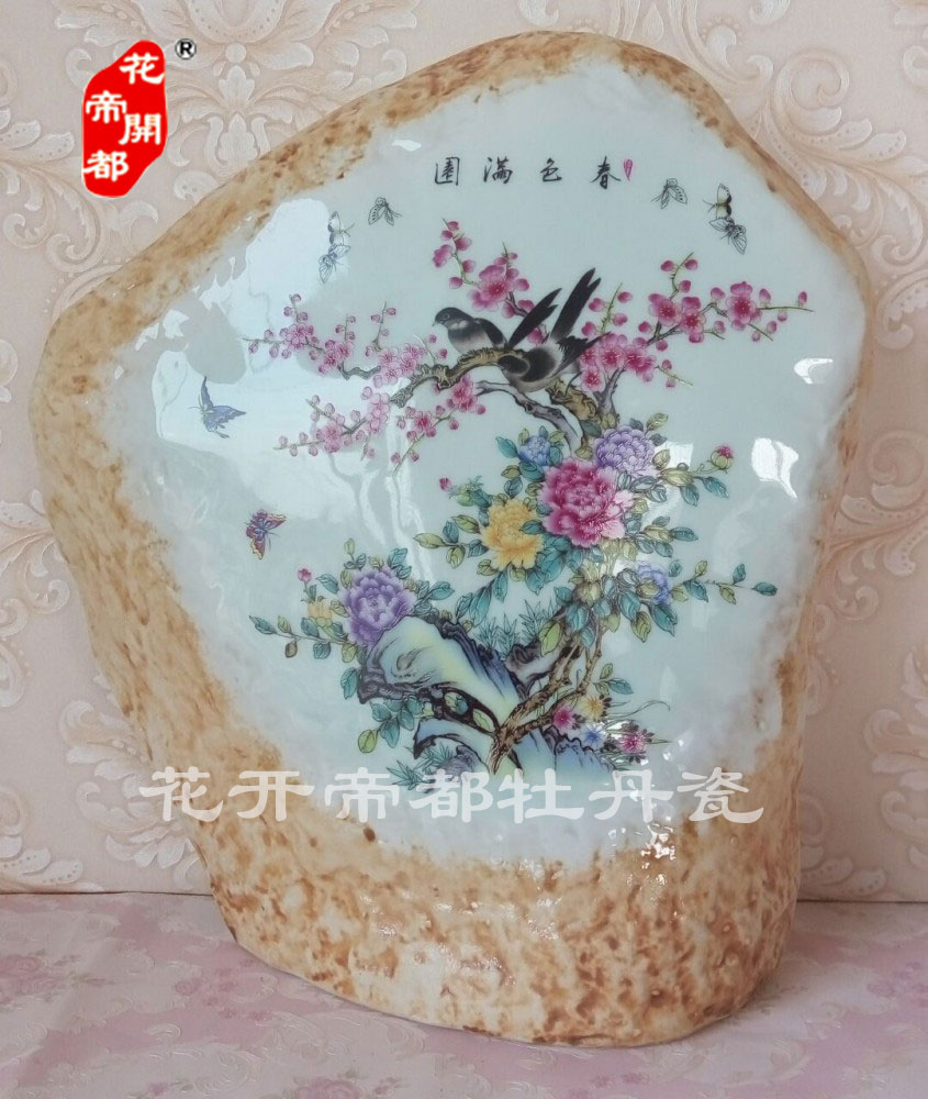 產品系列主要包括:牡丹瓷花盤、牡丹瓷屏風、牡丹瓷盆景、牡丹瓷壁掛和牡丹瓷鼎,形式多種多樣!每一件作品都是藝術的結晶,花、枝、葉均是手工捏制,造型逼真生動。
