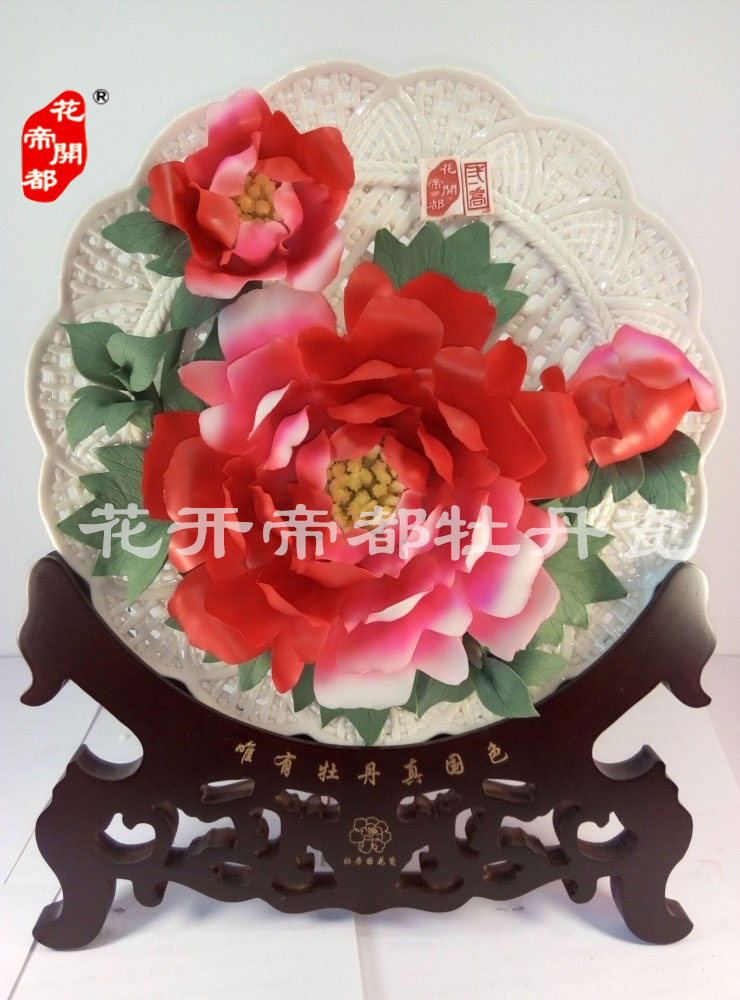 產品系列主要包括:牡丹瓷花盤、牡丹瓷屏風、牡丹瓷盆景、牡丹瓷壁掛和牡丹瓷鼎,形式多種多樣!每一件作品都是藝術的結晶,花、枝、葉均是手工捏制,造型逼真生動。