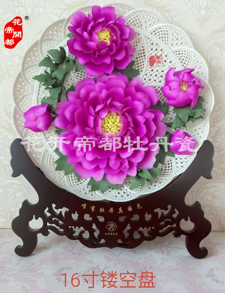 產品系列主要包括:牡丹瓷花盤、牡丹瓷屏風、牡丹瓷盆景、牡丹瓷壁掛和牡丹瓷鼎,形式多種多樣!每一件作品都是藝術的結晶,花、枝、葉均是手工捏制,造型逼真生動。