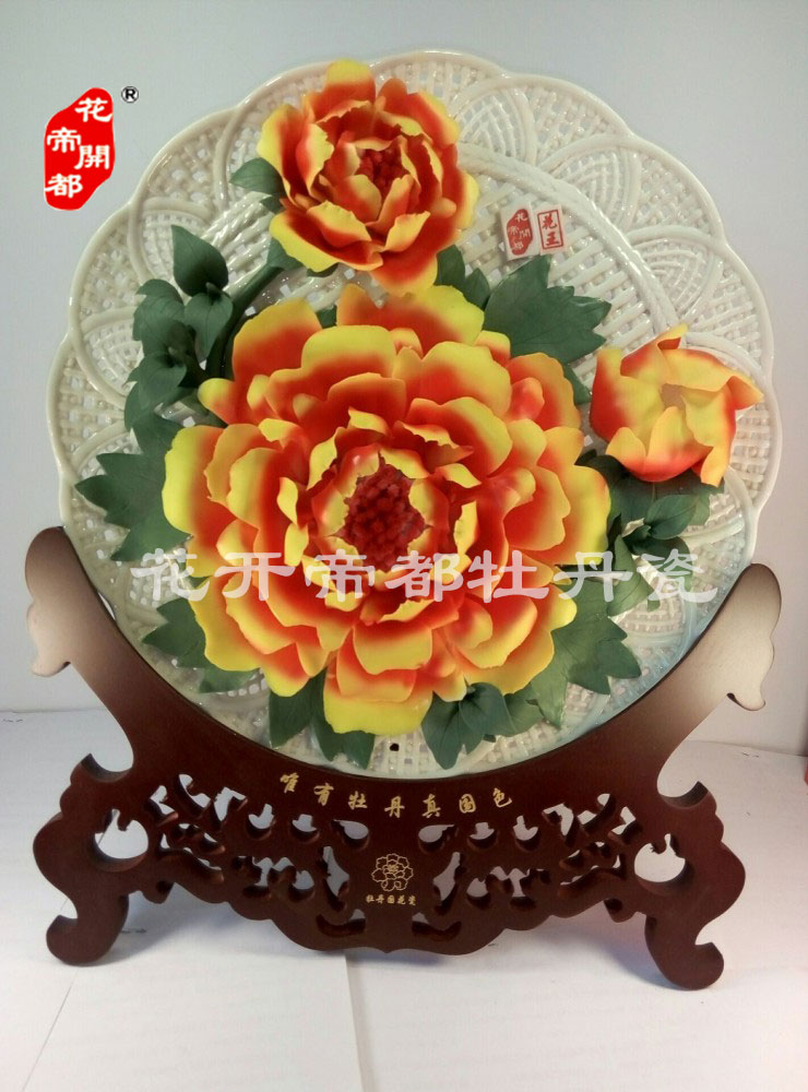 產(chǎn)品系列主要包括:牡丹瓷花盤、牡丹瓷屏風(fēng)、牡丹瓷盆景、牡丹瓷壁掛和牡丹瓷鼎,形式多種多樣!每一件作品都是藝術(shù)的結(jié)晶,花、枝、葉均是手工捏制,造型逼真生動(dòng)。