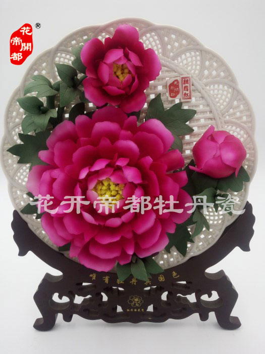 產品系列主要包括:牡丹瓷花盤、牡丹瓷屏風、牡丹瓷盆景、牡丹瓷壁掛和牡丹瓷鼎,形式多種多樣!每一件作品都是藝術的結晶,花、枝、葉均是手工捏制,造型逼真生動。